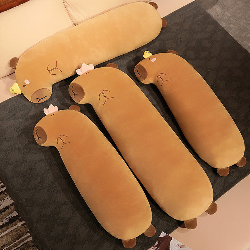 Size GuideThe Super Cute Soft Capybara Long Shape Hug Pillow Cushion 100cm Brown is an ultra-adorable, oversized plush body pillow shaped like everyone’s favorite chill capybara. Measuring about 100cm (around 39-40 inches) in length, this long cylindrical design features super-soft brown plush fabric, a plump and huggable body, tiny embroidered eyes, signature relaxed “3”-shaped mouth, and floppy ears for maximum cuteness.